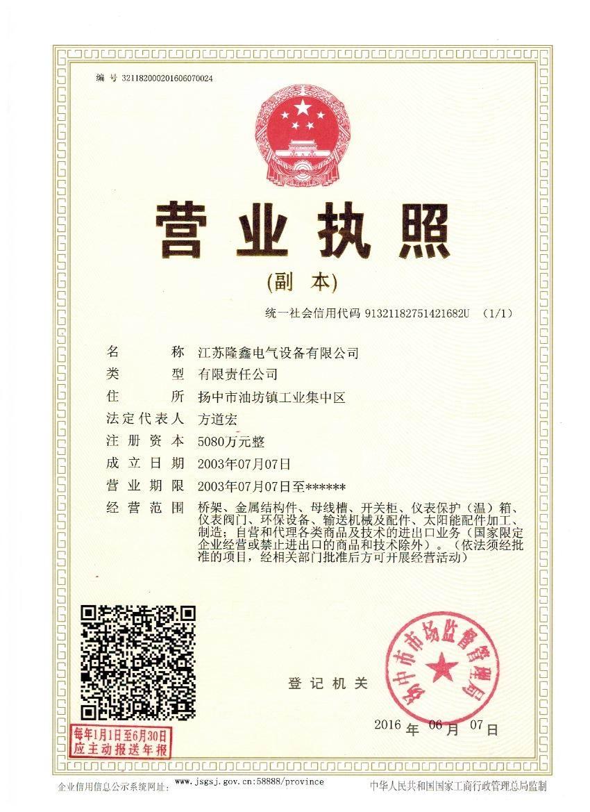 江蘇隆鑫電氣設(shè)備有限公司(原揚(yáng)中市隆鑫電器設(shè)備有限公司)位于風(fēng)景秀麗的江南古城 ---- 鎮(zhèn)江東部揚(yáng)子江畔,水陸交通便利。 本公司是中石化網(wǎng)絡(luò)成員企業(yè),是揚(yáng)中橋架企業(yè),工業(yè)管道閥門、儀表管配件、母線槽、匯線橋架、玻璃鋼制品的專業(yè)生產(chǎn)廠家。 我公司一貫以經(jīng)營以管理為保證、以科技進(jìn)步為動力,使產(chǎn)品的市場占有率不斷提高,公司正持續(xù)、穩(wěn)步、健康地向前發(fā)展,秉循“創(chuàng)造完美、服務(wù)用戶、奉獻(xiàn)社會”的經(jīng)營觀念,本公司生產(chǎn)的儀表管件及閥門系列產(chǎn)品、母線槽、電纜橋架幾乎覆蓋全國31個(gè)省、市、自治區(qū)的化工、冶金、交通、輕...